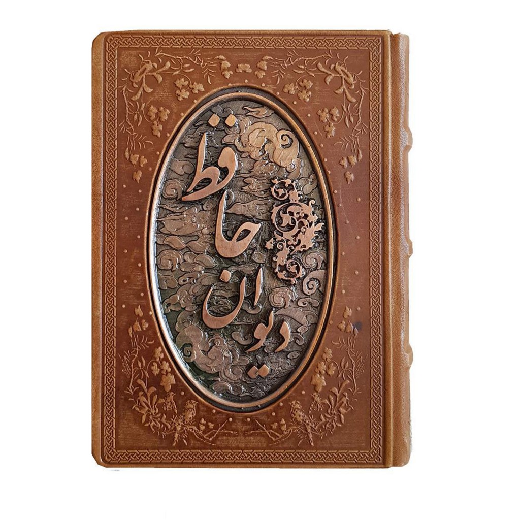 جلد کتاب از چرم طبیعی گاو ساخته شده و صفحهی رویهی مزین به قطعهی مسی، جلوهای از هنر دست و اصالت ایرانی را در کنار شعر جاودانهی حافظ قرار داده است؛ گویی پیوند میان موسیقی کلمات و لمس هنر فلز، روح و جسم اثر را تکمیل کرده است.