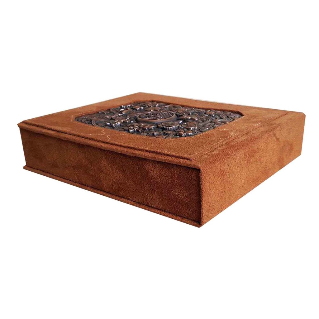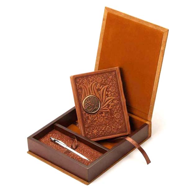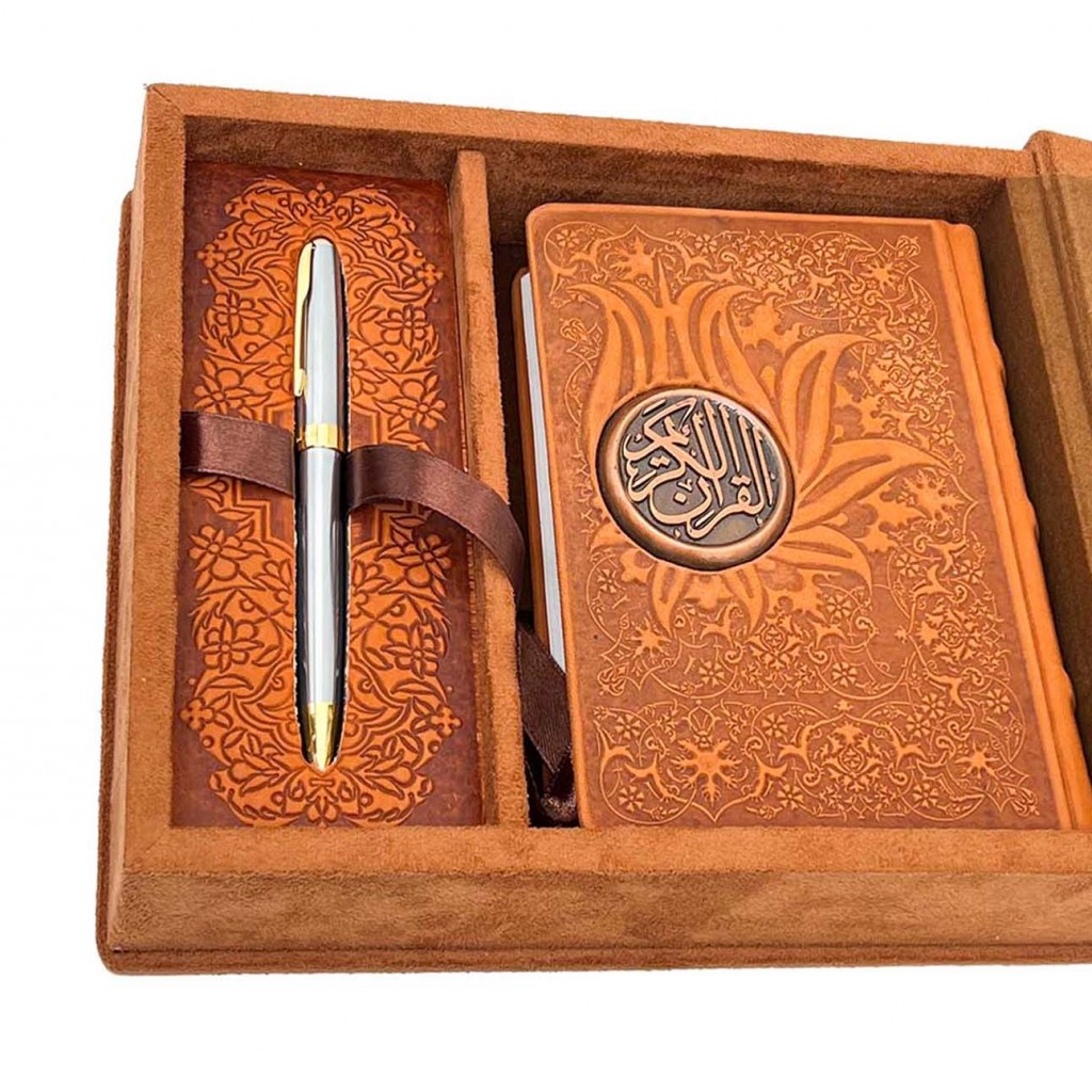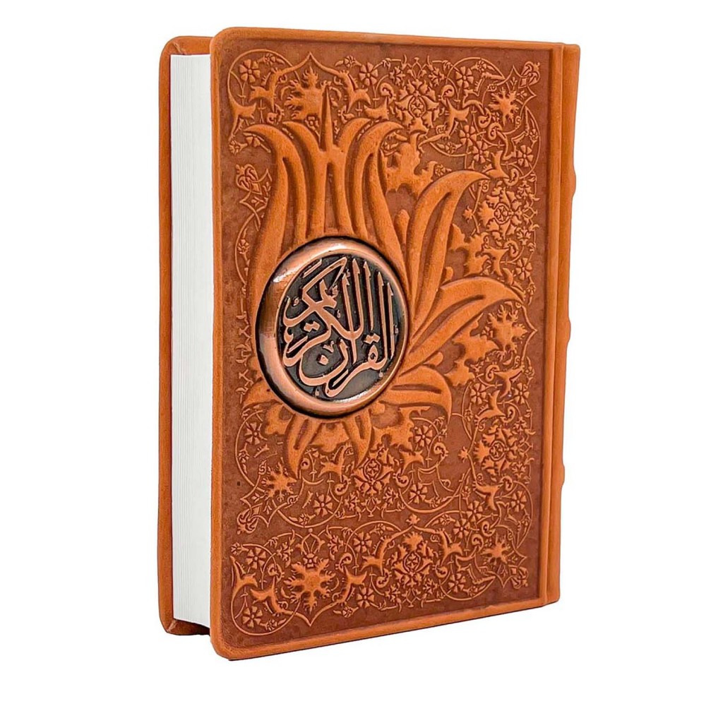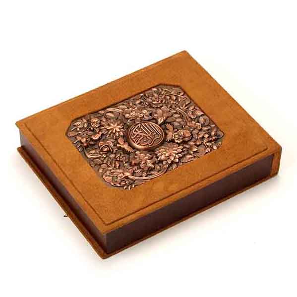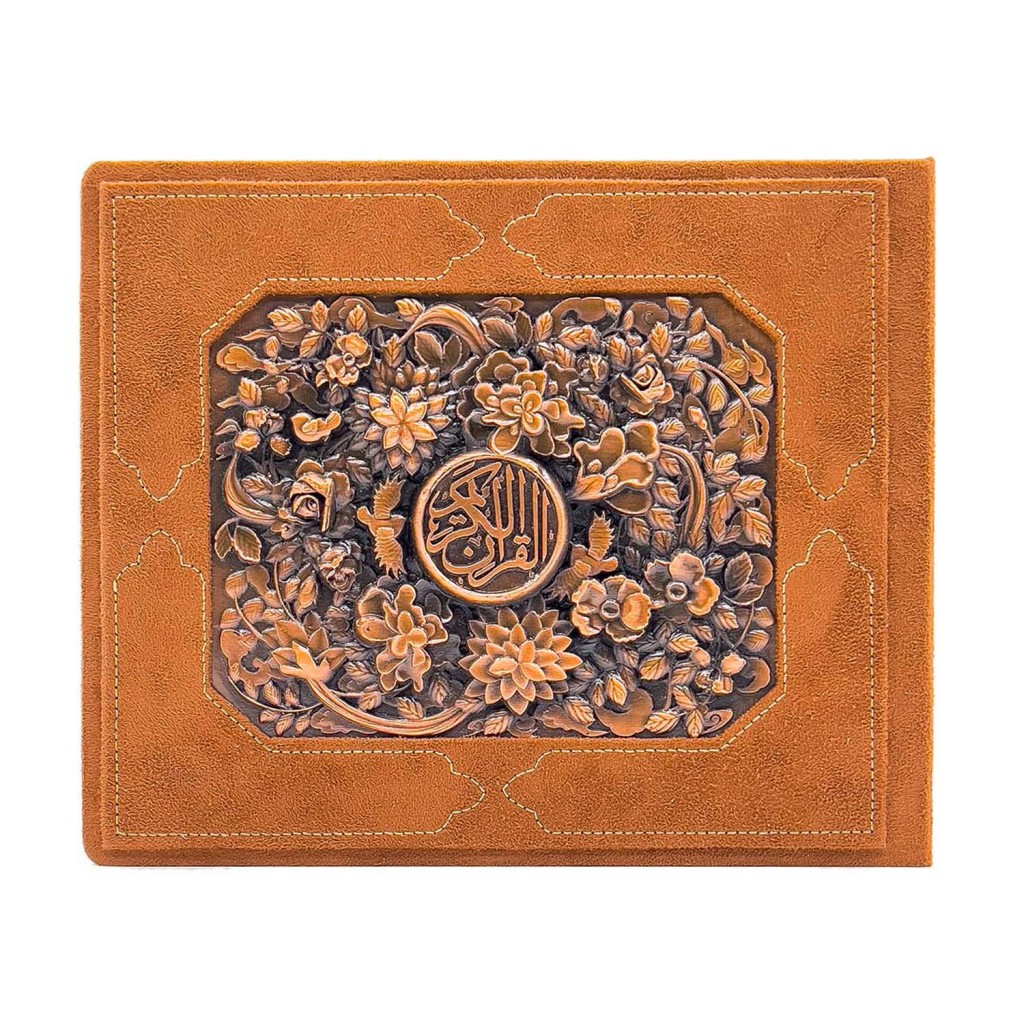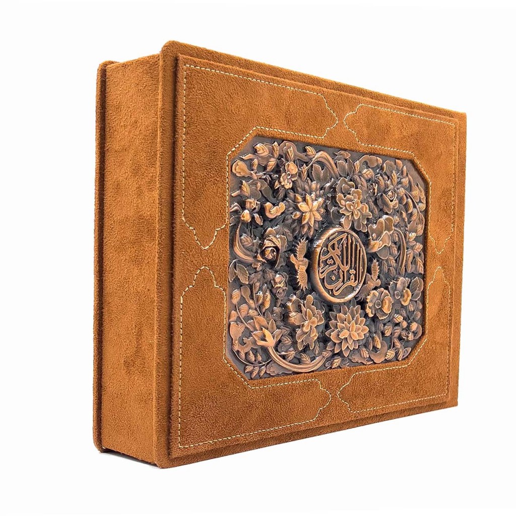 این نسخه با ابعاد کتاب ۱۷×۱۳ و جعبهای ۲۵×۲۱، مطالعه قرآن را به تجربهای لوکس و ماندگار تبدیل میکند. جلد ساخته شده از جیر همراه با جزئیات مسی، جلوهای ظریف و هنری به کتاب بخشیده و حس ارزش و احترام به متن مقدس را تقویت میکند.
