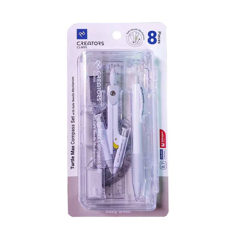 ست پرگار کریتورز کلاس مدل ترتل مجموعهای 8 عددی و کامل برای دانشآموزان، دانشجویان و علاقهمندان به طراحی است.