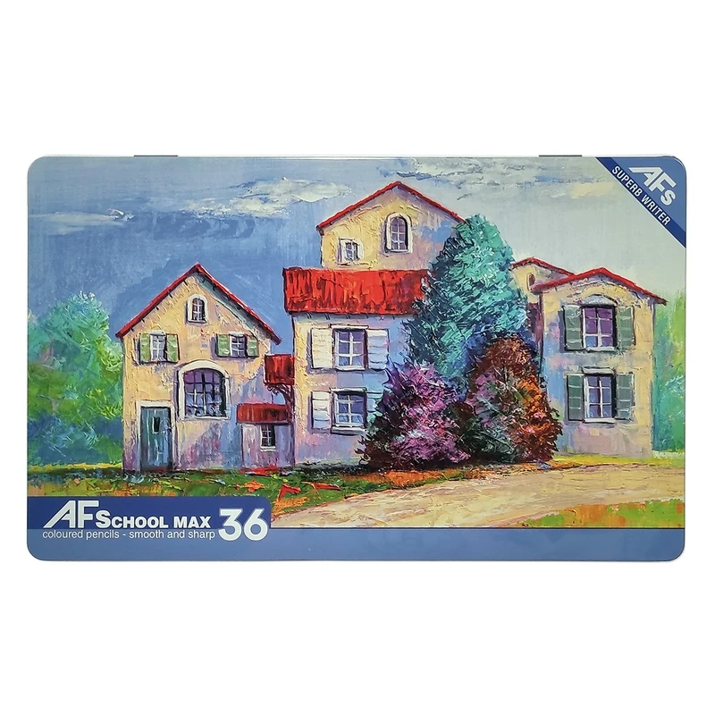 مداد رنگی ۳۶ رنگ ای اف اسکول مکس با طرح چشمنواز خانههای روستایی، انتخابی بینظیر برای هنرمندان کوچک و بزرگ است.
