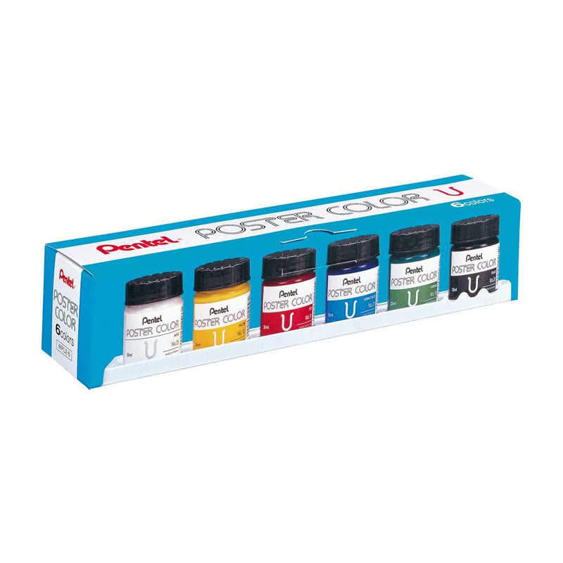 بسته 6 عددی، شامل رنگهای: - سفید - زرد - قرمز - آبی (Cobalt Blue) - سبزآبی (Viridian) - مشکی است.