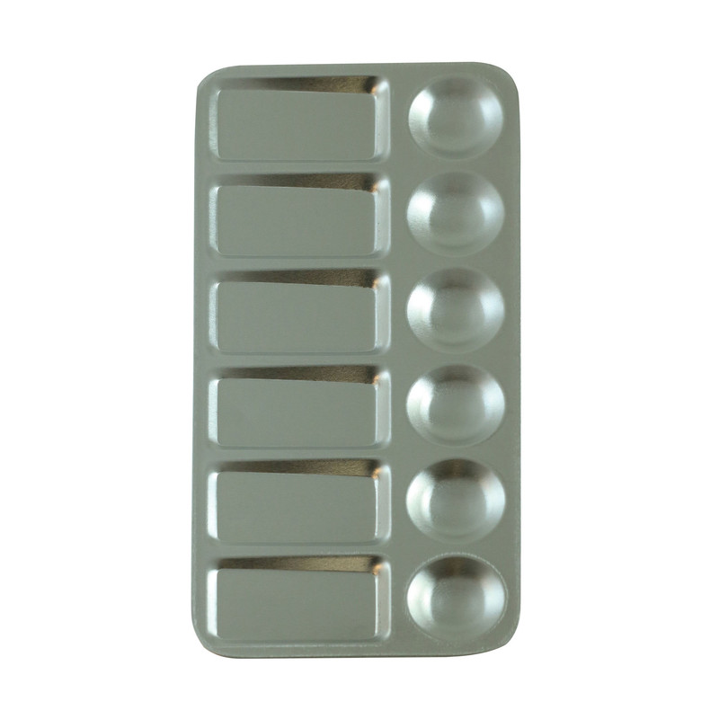 سایر توضیحات | پالت از جنس آلومینیومدارای 6 خانه دایره شکل با قطر 7 سانتی متر و 6 خانه مستطیلی |