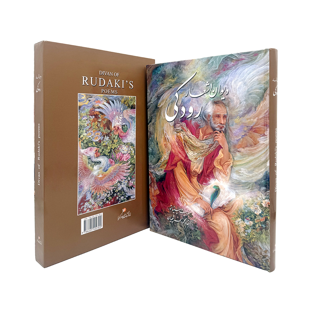 دیوان اشعار رودکی، شاعر بزرگ و پدر شعر فارسی، مجموعهای است بیزمان که گوشهای از شکوه ادبیات کلاسیک ایران را در خود جای داده است. این اثر ارزشمند، با طراحی هنرمندانه استاد محمود فرشچیان در زمینه تذهیب و مینیاتور، هر صفحه را به گنجینهای بصری و ادبی بدل کرده و حس و حال دوران طلایی شعر فارسی را به خواننده منتقل میکند.
