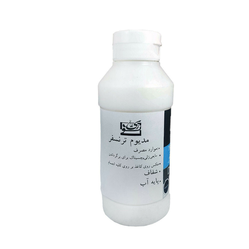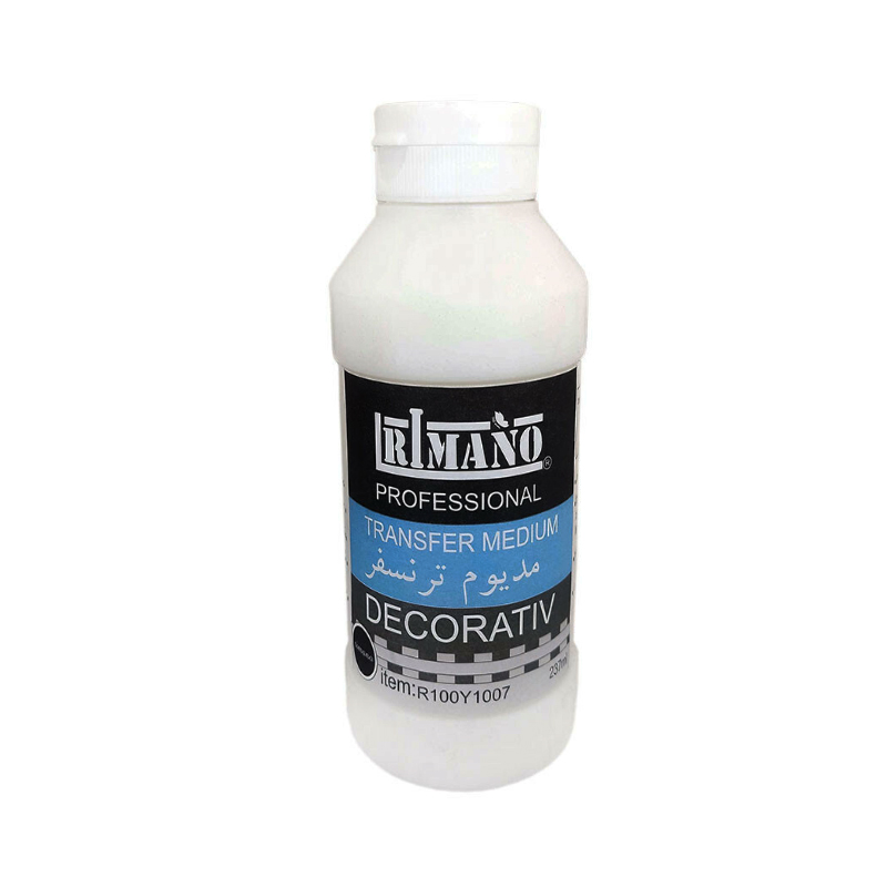 • بطری حاوی ۲۳۷ میلیلیتر مدیوم ترنسفر ریمانو• مدیوم ترنسفر یک چسب پایه آب، ژلهای و چسبناک است که برای انتقال عکس از روی کاغذ بر روی سطوح مختلف به کار میرود.
