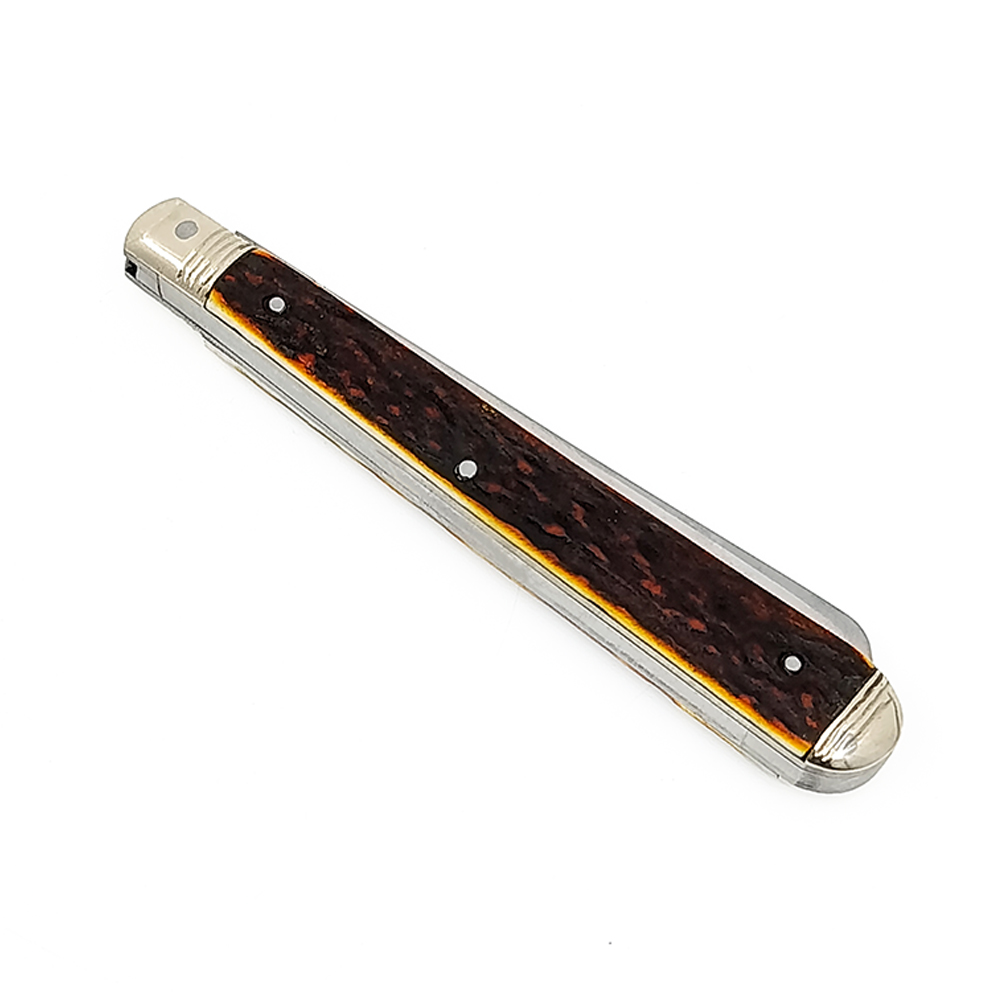 قلمتراش یک تیغه دسته شاخ گوزن پلاکدار (کتابت تراش) 11/5 سانتیمتر /حیدر زنجانی