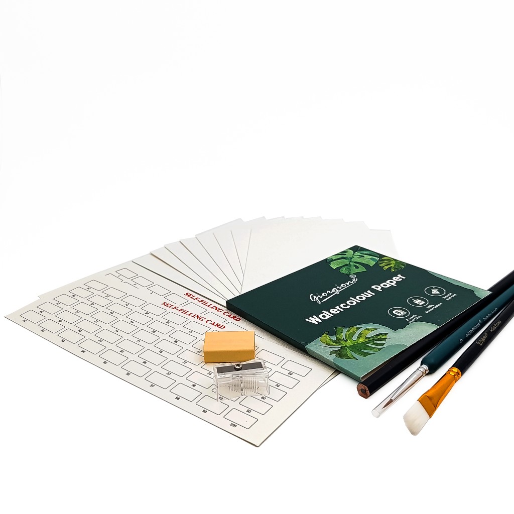 همراه با کاغذ مخصوص آبرنگ - قلمو سر تخت ، سر گرد-تراش-پاک کن-ابر -