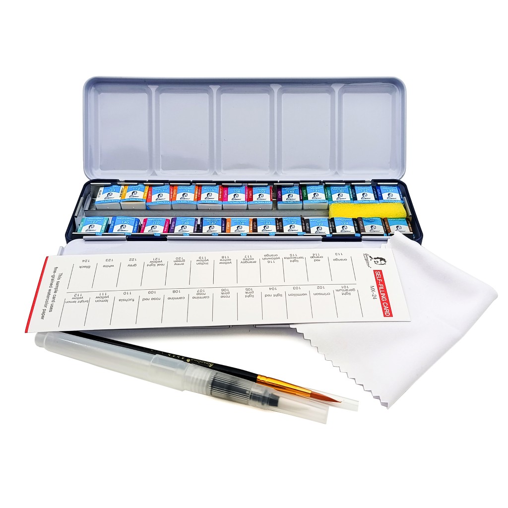 همراه با کاغذ مخصوص آبرنگ - قلمو سر گرد-ابر - دستمال مخصوص- واتر براش