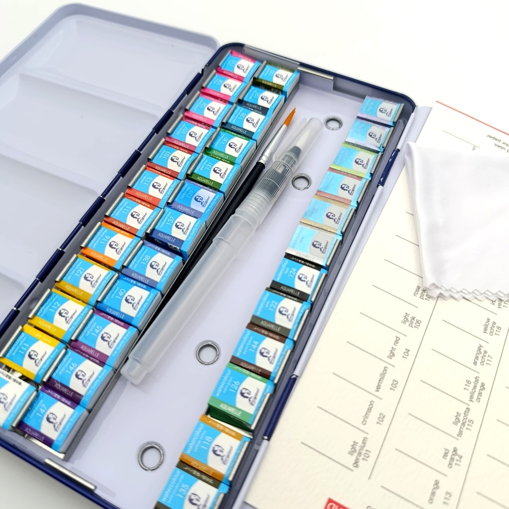 همراه با کاغذ مخصوص آبرنگ - قلمو سر گرد-ابر - دستمال مخصوص- واتر براش