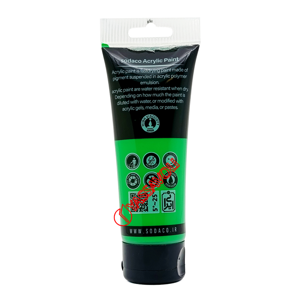 رنگ اکریلیک تیوپ ساده 75 میل سبز چمنی برند سوداکو کد 08348